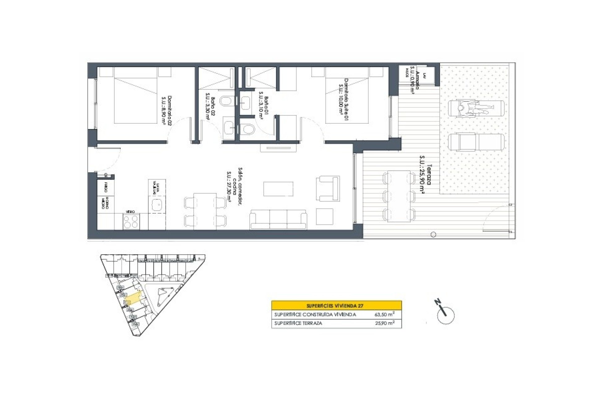 Alle Wohnungen verfügen über: Vorinstallierte zentrale Klimaanlage, LED-Beleuchtung im gesamten Haus und LED-Außenbeleuchtung.