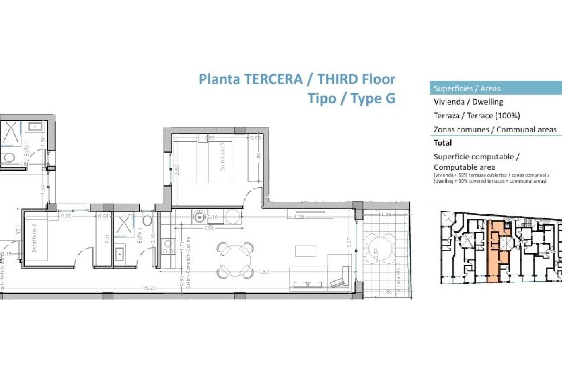 Das Gebäude umfasst 44 Apartments mit Aufzug und Gemeinschaftspool im Solarium. Der nächste Supermarkt ist nur 500 m entfernt.