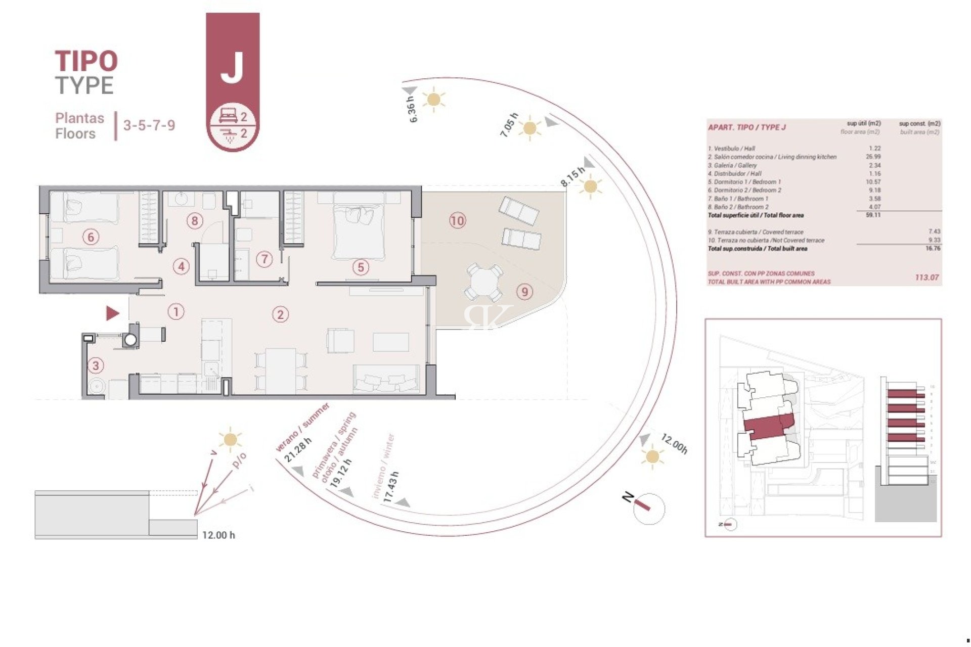 Die Wohnungen verfügen über eine Video-Gegensprechanlage mit Smartphone-Anschluss, eine zentrale Klimaanlage und bestehen aus: