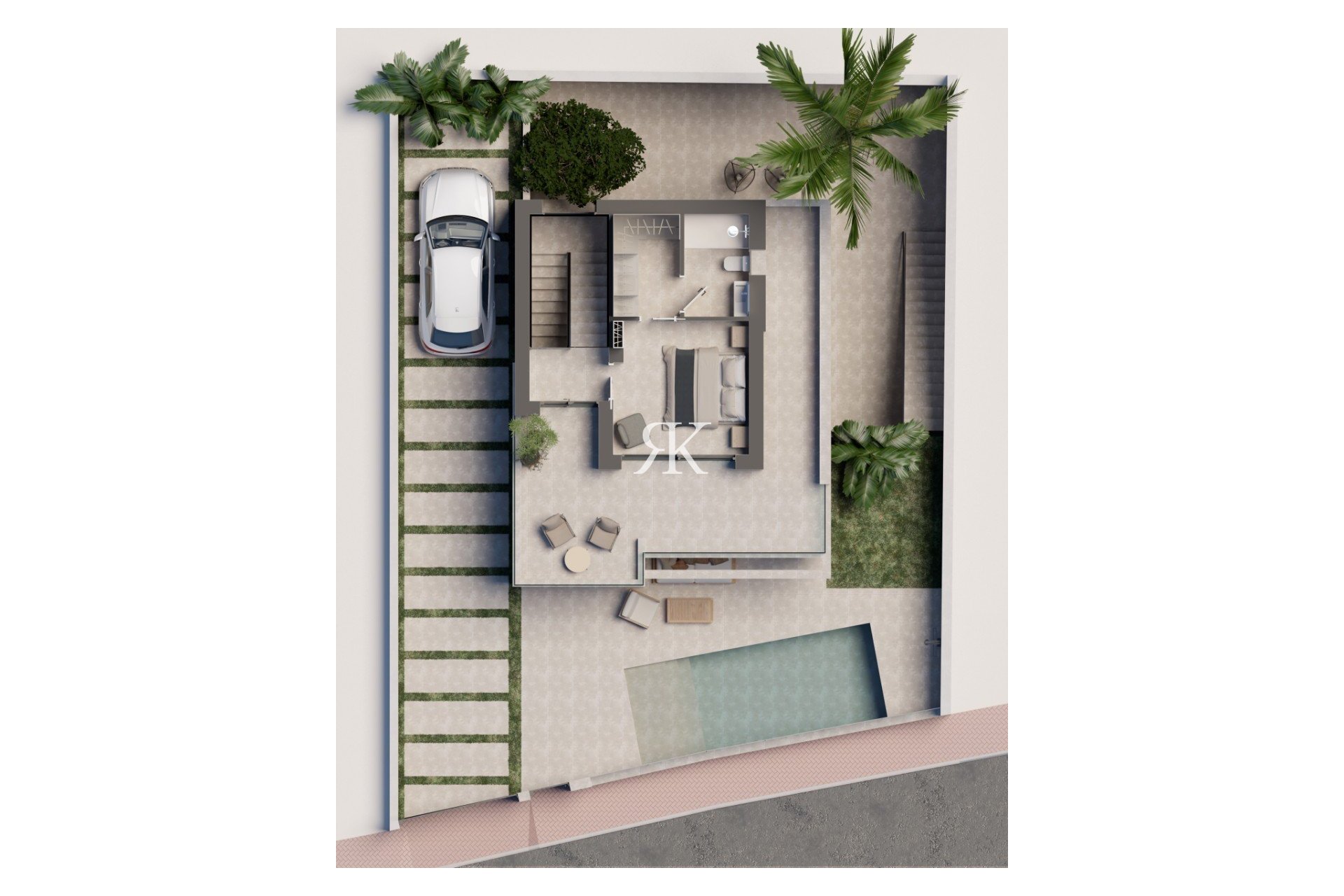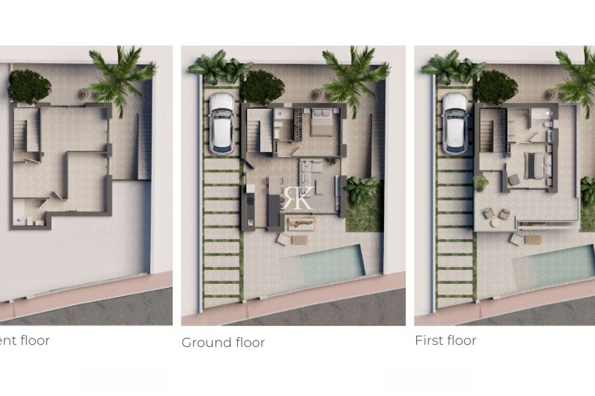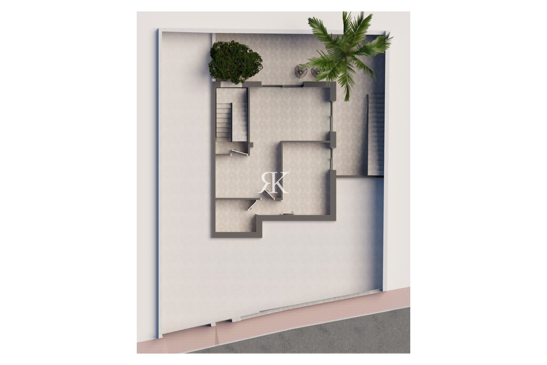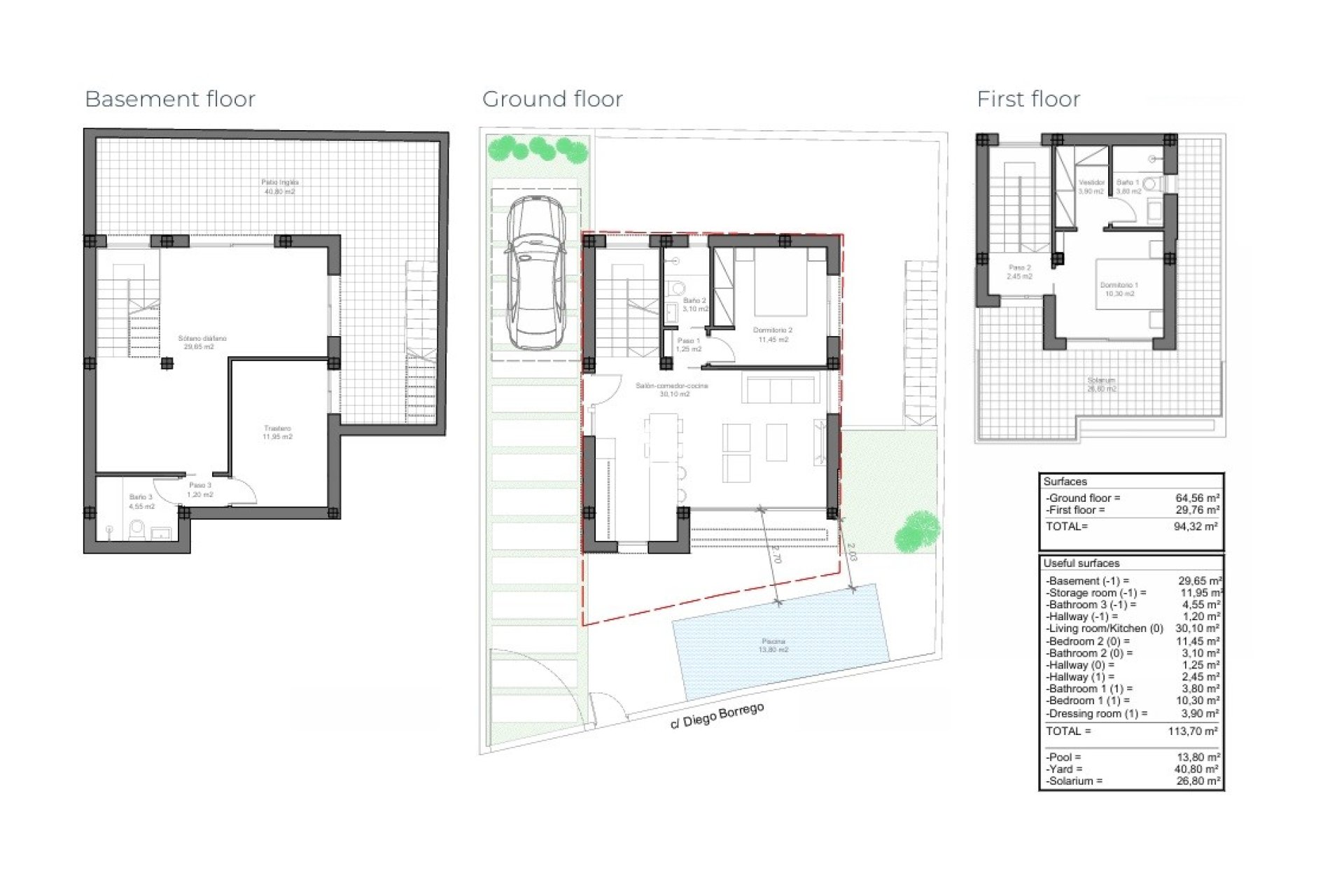 - Kellergeschoss (31,05 m²) mit Belüftung, Tageslicht und Vorinstallation für Klimaanlage, englischer Patio (40,80 m²), Innentreppe. Ein Mehrzweckraum, ein Abstellraum, ein Badezimmer mit Dusche, Duschwand, Möbeln, WC, Vorinstallation für Strom-, Telekommunikations- und Beleuchtungsleitungen.