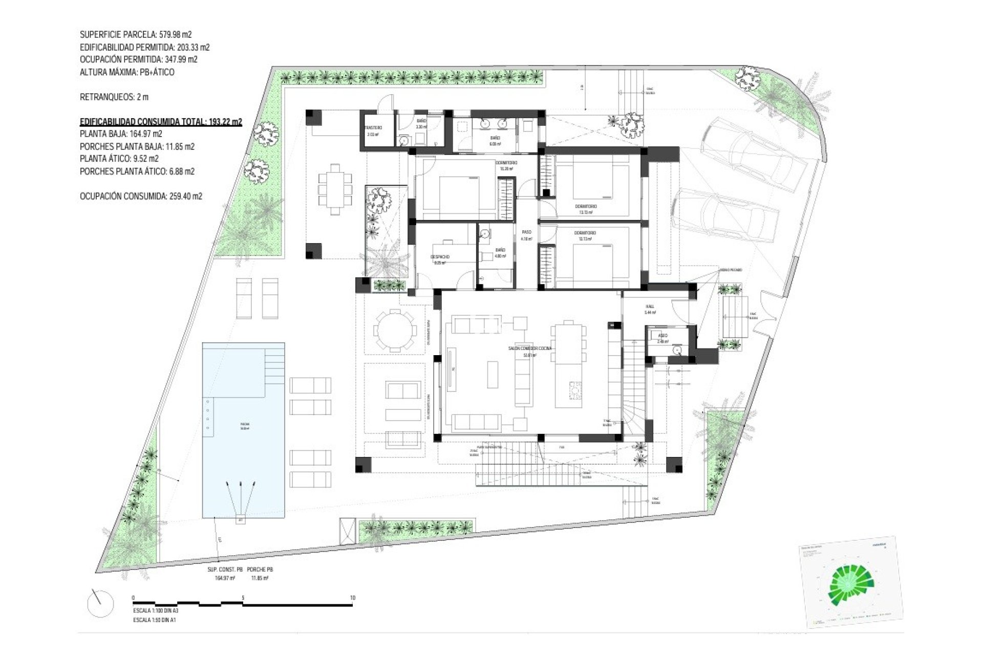 Im Preis inbegriffen: Klimaanlage im Erdgeschoss. Doppelverglasung mit niedrigem Emissionsgrad und Sicherheitsglas mit Luftkammer und Sonnenschutz. Warmwasser-Umwälzsystem. TV- und Telefonanschlüsse im Wohn-Esszimmer, der Küche und den Schlafzimmern. 6 Solarmodule.