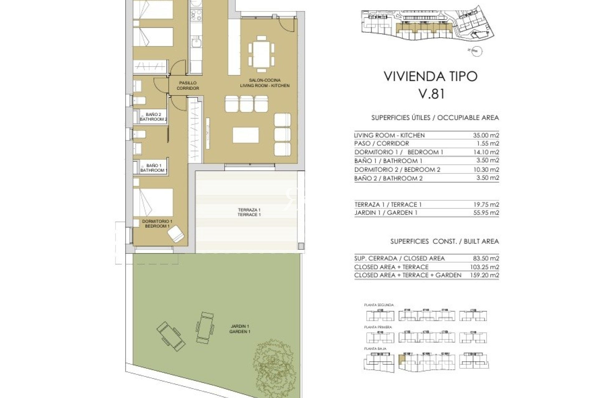 Alle Wohnungen verfügen über: Vorinstallation einer Klimaanlage, Installation von Photovoltaikmodulen zur Stromerzeugung und Telefon- und Fernsehanschlüsse in Schlafzimmern und Wohnzimmer.