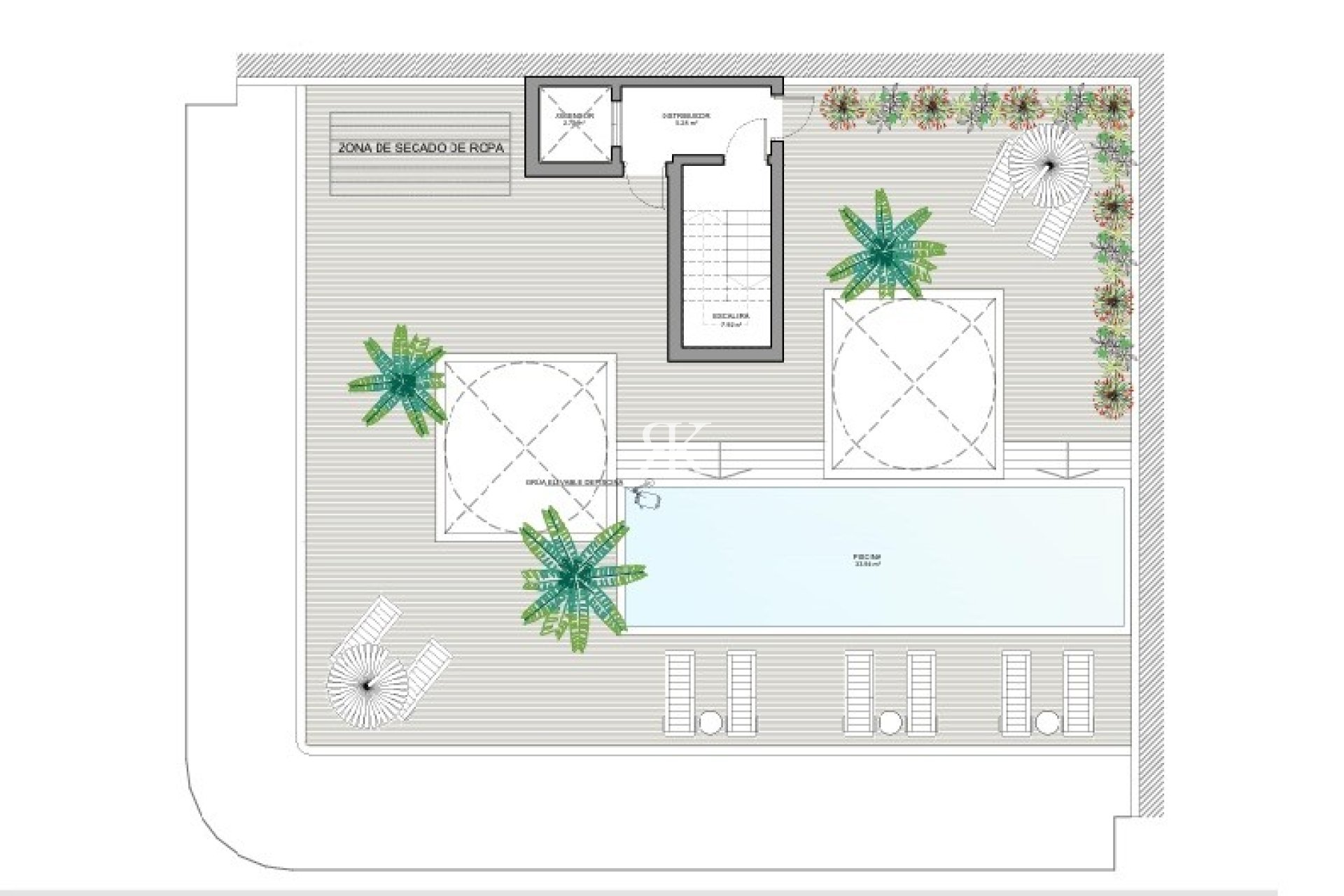 Die geschlossene Wohnanlage verfügt über ein gemeinschaftliches Solarium mit entspannendem Loungebereich und Swimmingpool.