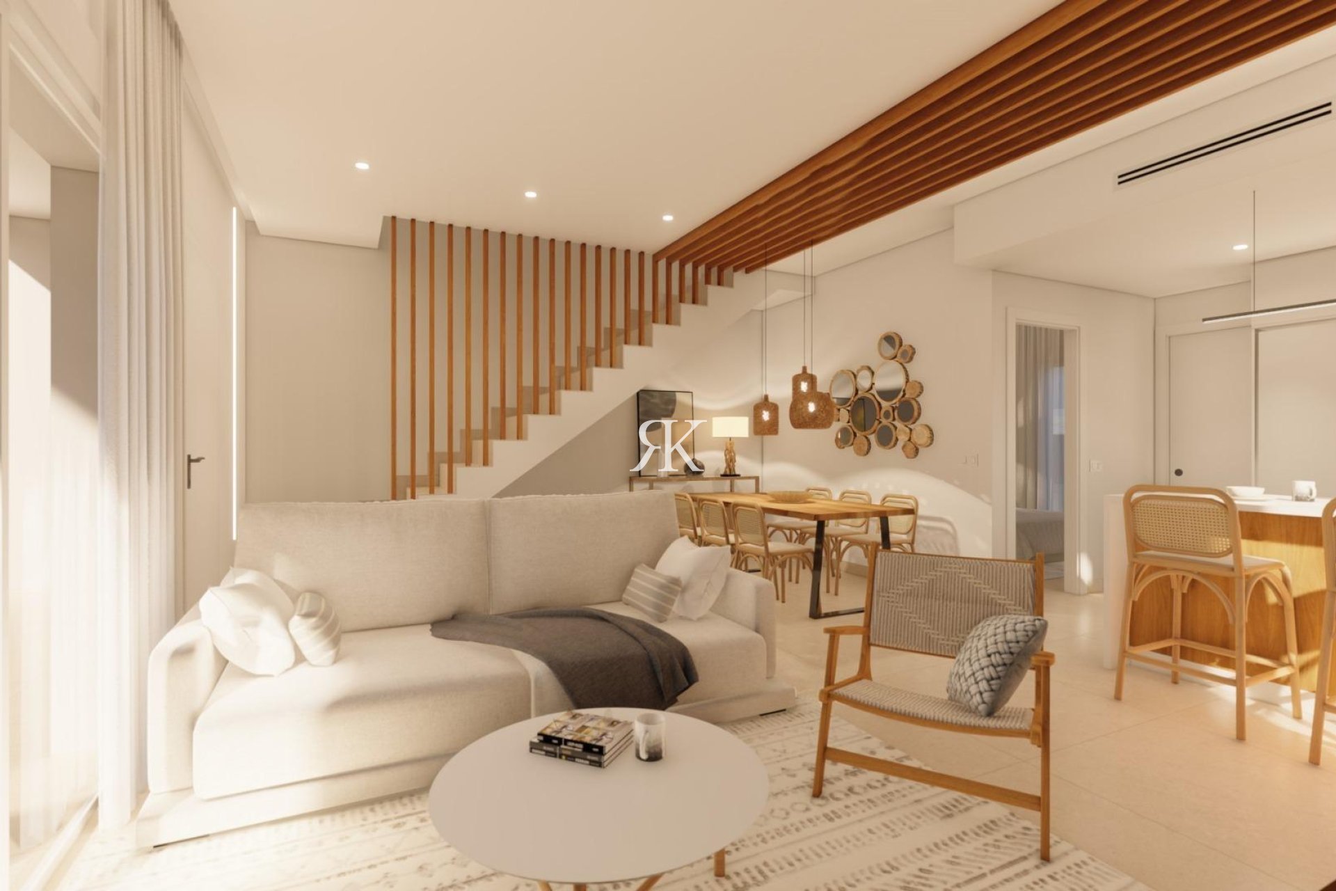 Das Innere der Villen besteht aus 3 Schlafzimmern, 3 Bädern en suite, großes offenes Wohnzimmer mit Küche alle auf zwei Etagen.