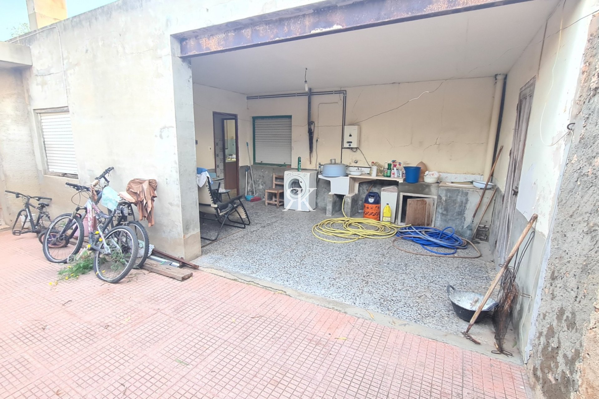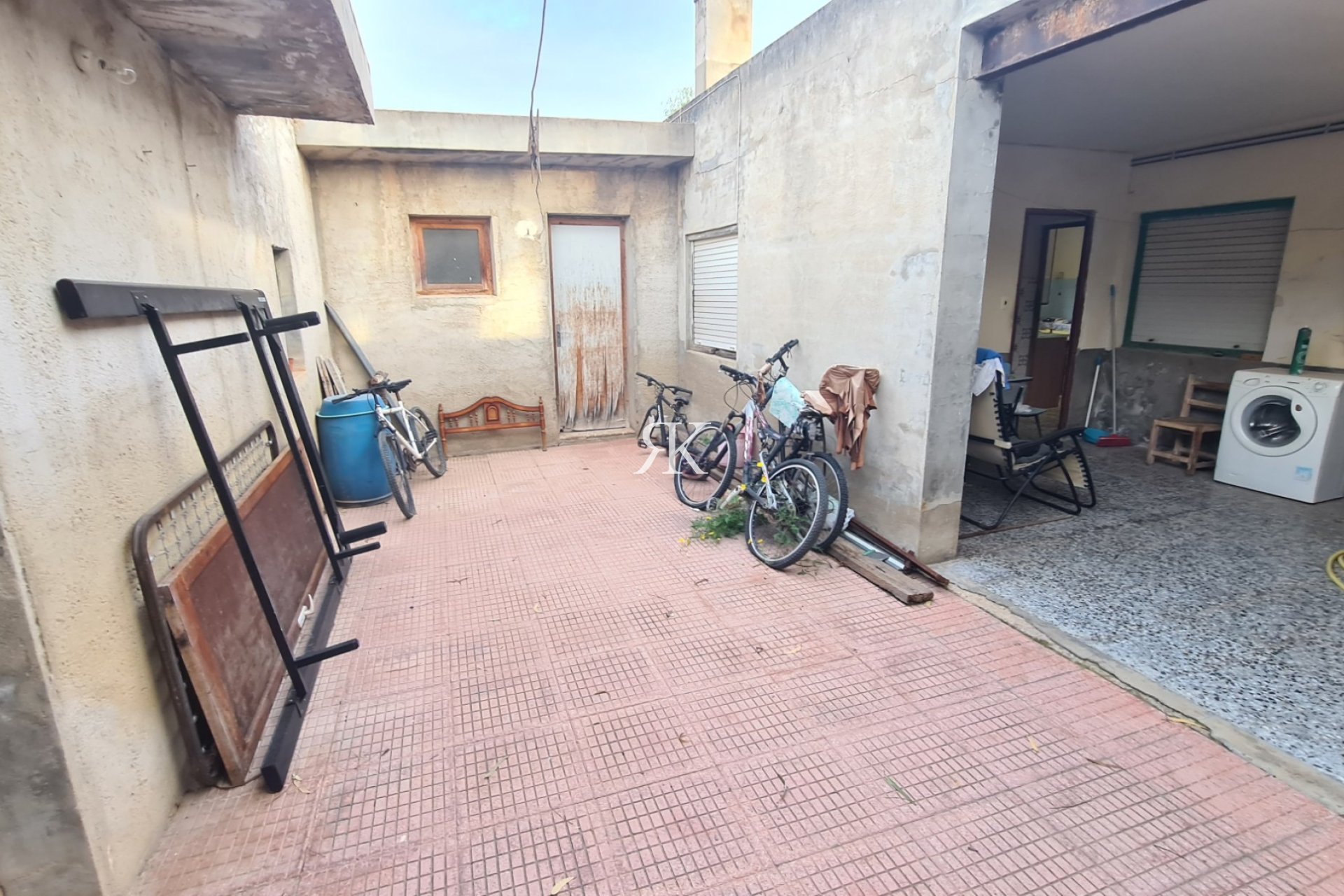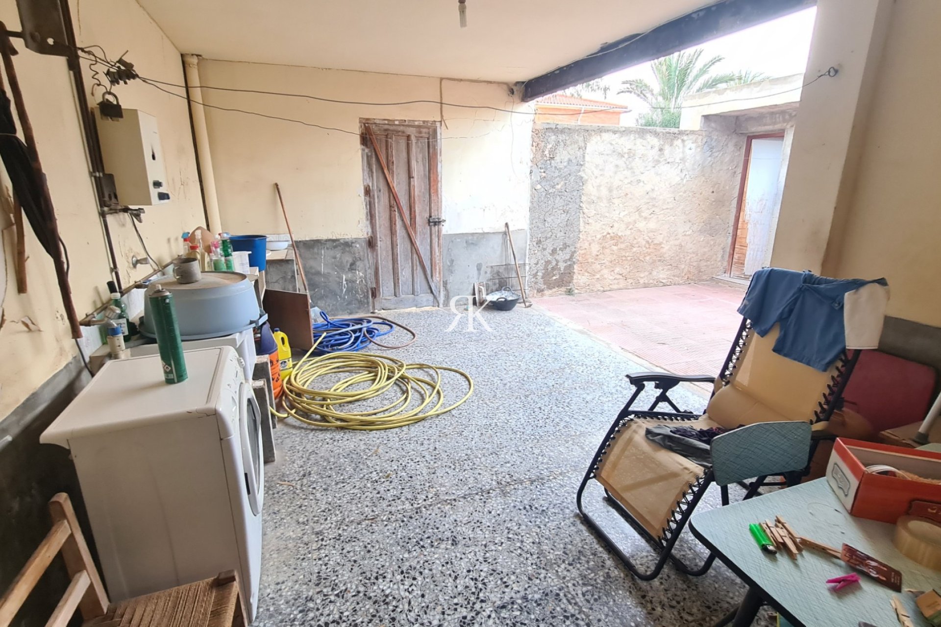 Large internal Patio with a covered terrace,a utility room and a large storage room