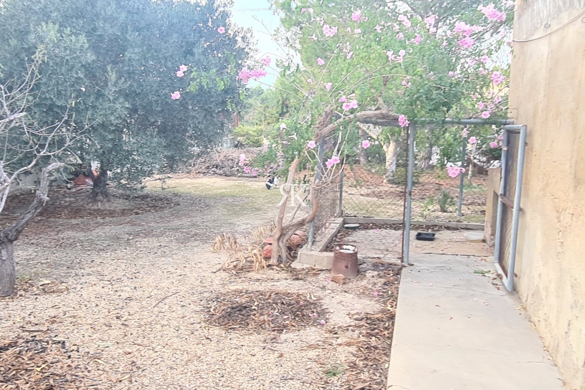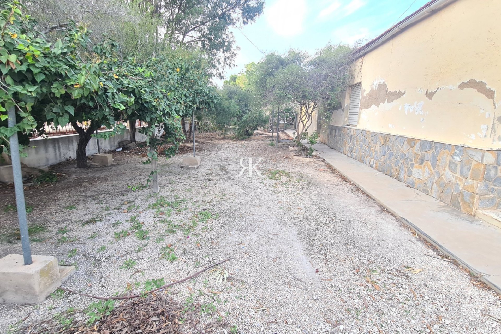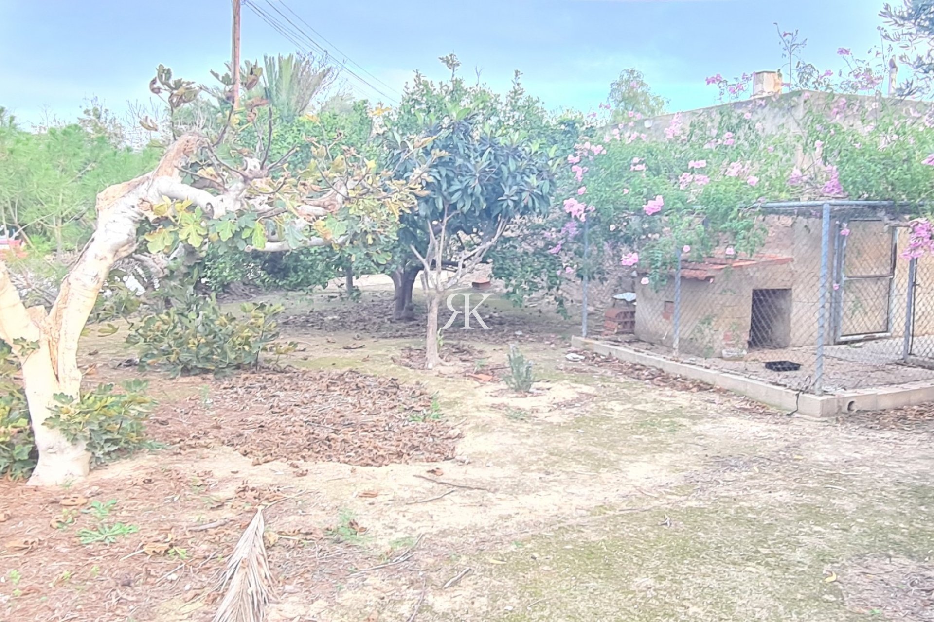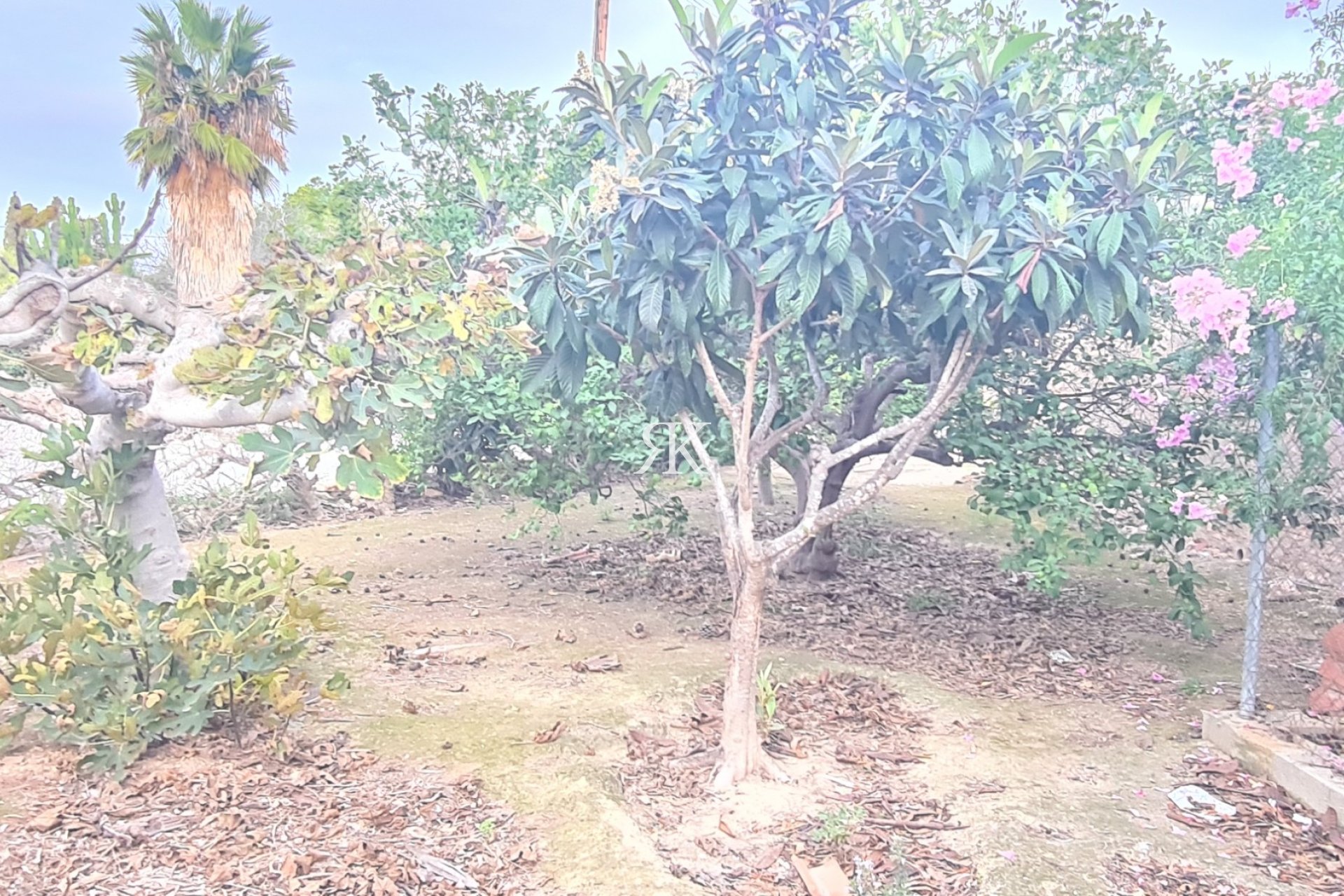 The plot has different fruit trees and there is enough space to build a swimming pool legally in urban land.