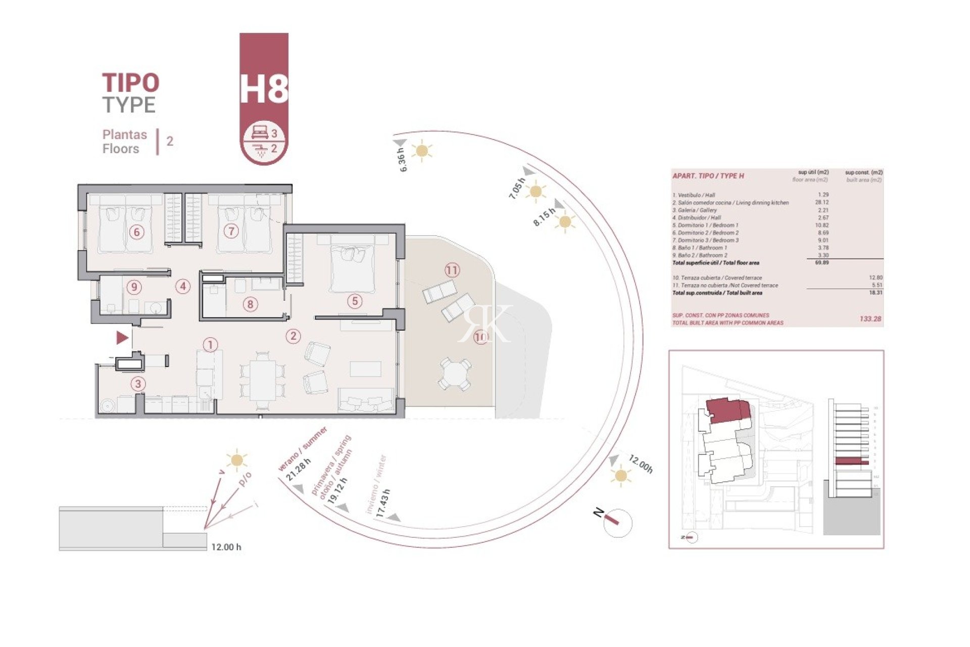 Price includes: Video intercom connectable to smartphones,Centralized Air-conditioning..The living room windows will be darkened with blackout fabric roller blinds located in the false ceiling.Bedroom windows will have aluminum slat blinds matching the woodwork color.Domestic hot water produced by a compact storage fan heater with occasional electrical backup.High-grade 9.2 kW electrical installation supported by renewable energy through photovoltaic panels.USB/C charging ports in the kitchen and bedrooms. Exterior lighting via wall lights .TV (DTT/SAT) outlets in the living room and bedrooms. Access to fiber optic broadband services. Data outlets in the living room and bedrooms.