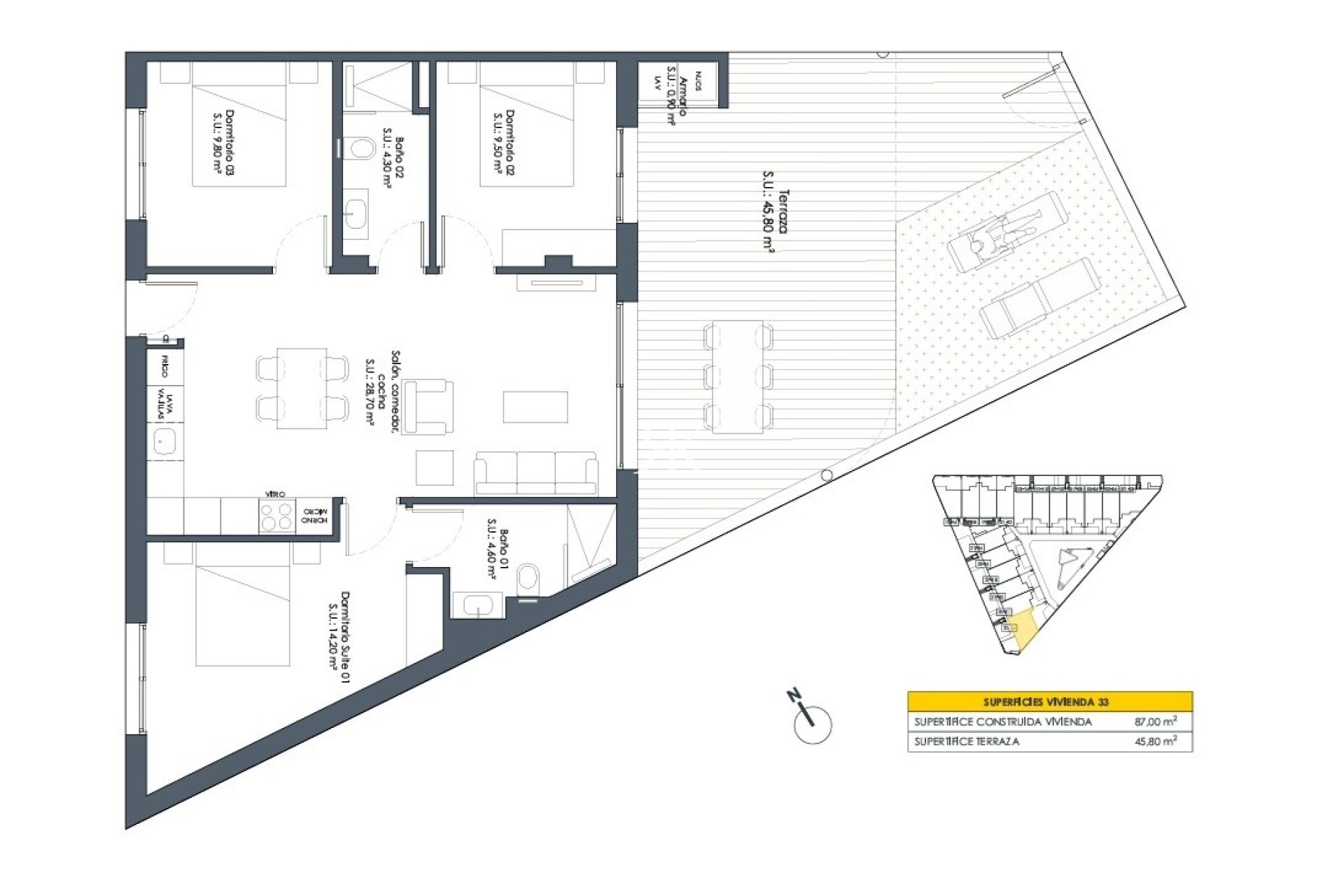 The community has a Mediterranean style pool and surface area of 85m2. Each property will have their own parking space.