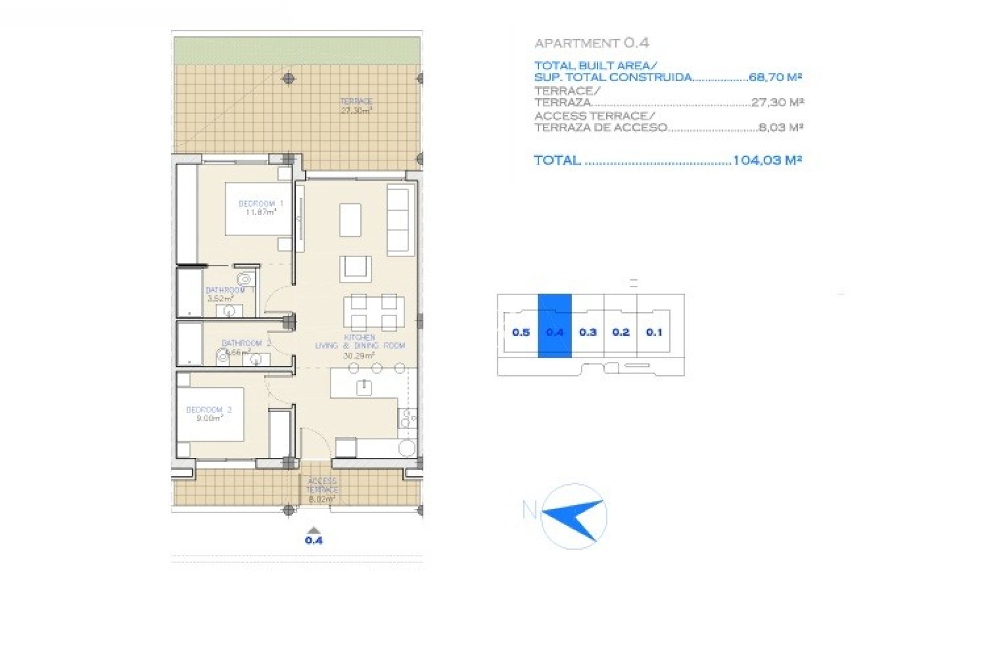 All apartments have: Video Intercom,TV and Internet RJ45 sockets in all the rooms and the living room, light points at the terrace and plot. The interior lighting, spotlight type, is included, except for the lamp in the living room. Exterior lighting is also included.Domestic hot water system aerotherm with a 110 liter accumulator.