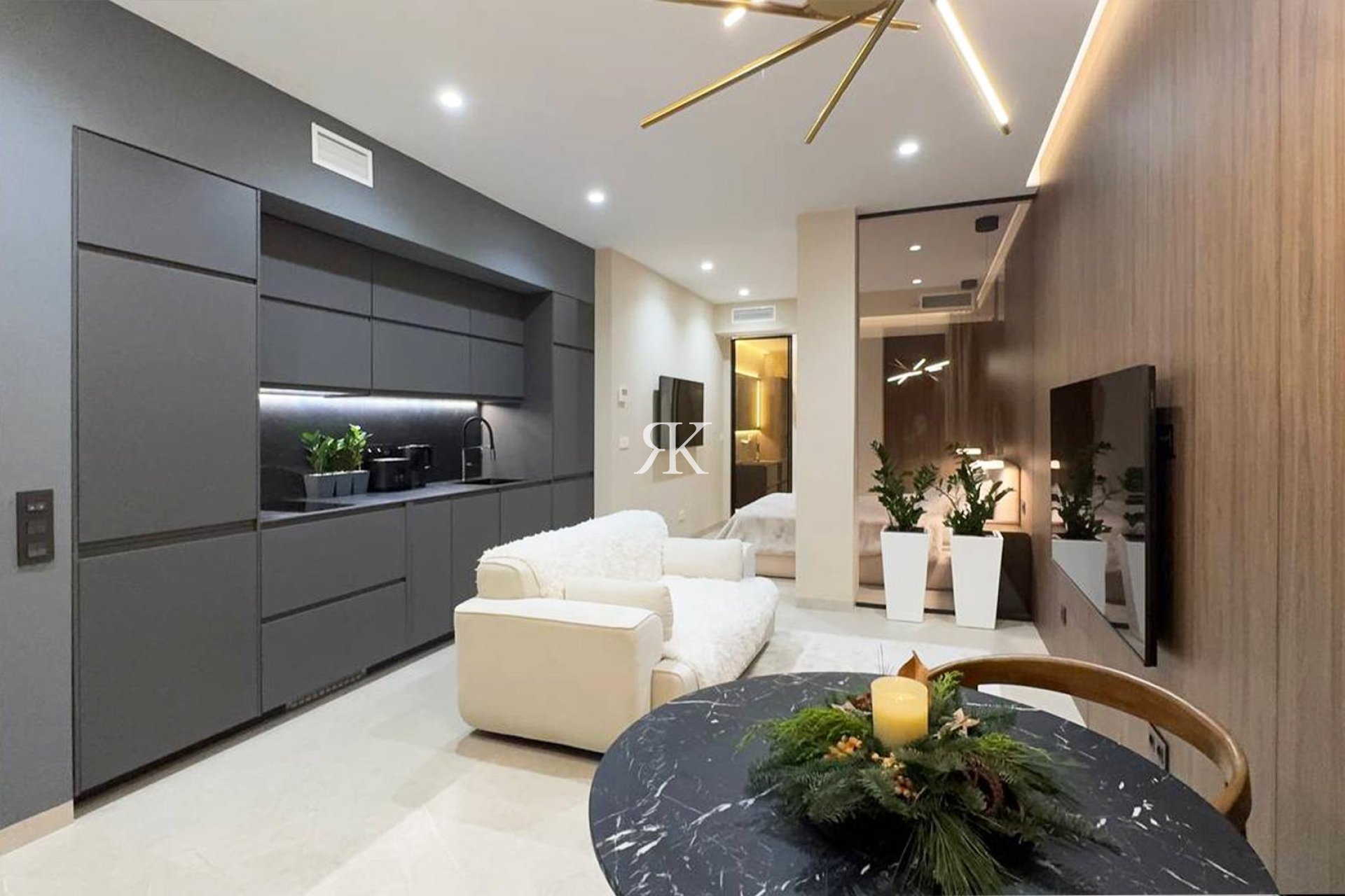 Stylish 1-bedroom apartment of 45 m² in the heart of Torrevieja, just 250 meters from Los Locos Beach. The apartment offers a bright living area with panoramic floor-to-ceiling windows, a fully equipped modern kitchen, and a comfortable bedroom with built-in wardrobe and elegant finishes. The bathroom features a rainfall shower, stone washbasin, and underfloor heating. Climate control, LED lighting, and a private terrace complete this sophisticated Mediterranean retreat—ideal as a holiday home or a permanent residence under the Spanish sun.