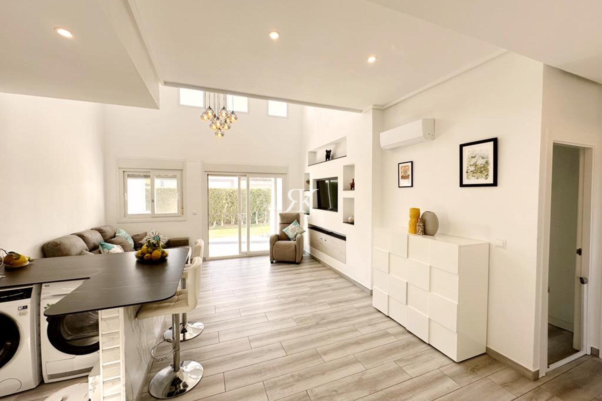 WOW! This villa has to be viewed. We are thrilled to offer this fully modernised Acebuche villa for sale on the wonderful La Torre Golf Resort. No expense has been spared with this property. The owners have extended the entrance area, added a storage room upstairs, fully retiled the solarium and added frosted privacy glass, opened up the living space with a brand new kitchen, new bathroom, rear tiled terrace with covered pergola and outdoor kitchen area, a huge shed (the perfect man cave!) and all new floorings and aircon throughout. The garden has plenty of space to add a private swimming pool. The property is situated close to the Kings College entrance of the resort and close to one of the communal swimming pools. Murcia airport is ten minutes drive along with the local village of Roldan. Onsite you have a supermarket and various bars and restaurants in the resorts town centre.The property has off road parking and an spacious storage cupboard to the front of the property. The stairs have been incorporated into the property and are situated to the right of the hallway with large storage cupboard at the top of the stairs and glazed patio access onto the tiled terrace where you can enjoy gorgeous views over the orange groves and amazing sunrises. The living space and kitchen have been opened up to create a more sociable living space with brand new kitchen and breakfast bar with built in oven, hob and microwave. Patio doors lead to the tiled terrace and lawned garden. To the left of the garden is an outdoor kitchen area with gas bbq and to the right a huge shed with tiled roof. There are two double bedrooms both with fitted wardrobes and a separate family bathroom with walk in shower. There is brand new aircon throughout, flyscreens on all doors and windows and a large storage cupboard in the living room. This is a gem of a villa, the current owners have refurbished the property entirely. Please contact us for a viewing appointment.