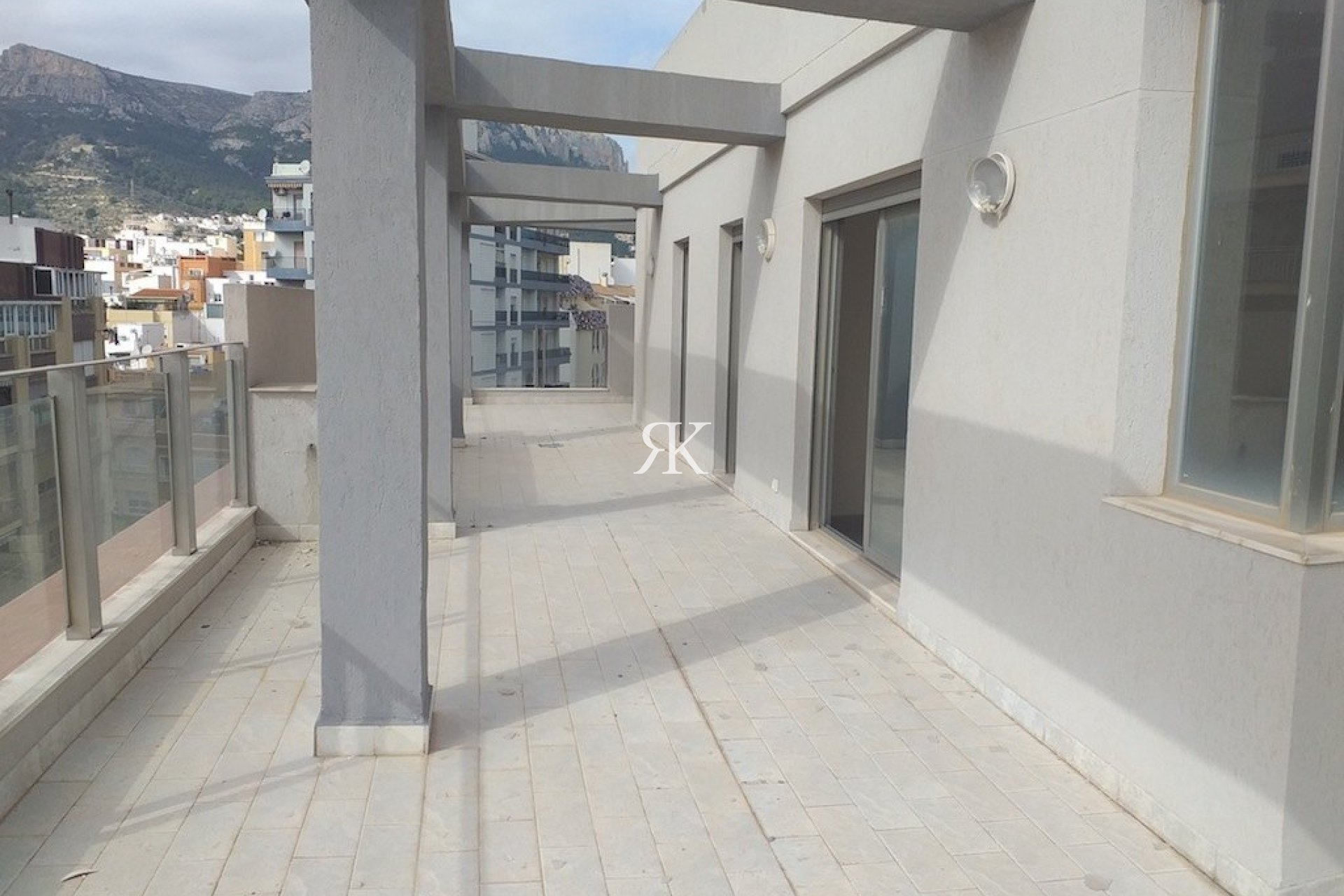 Penthouse in the center of Calpe in a building of recent construction the penthouse is brand new. It has 1 bedroom, 1 bathroom with jacuzzi, kitchen, living room with access to a large terrace of 100m +/. With open views of 180o from the sea, mountain and the center of Calpe.