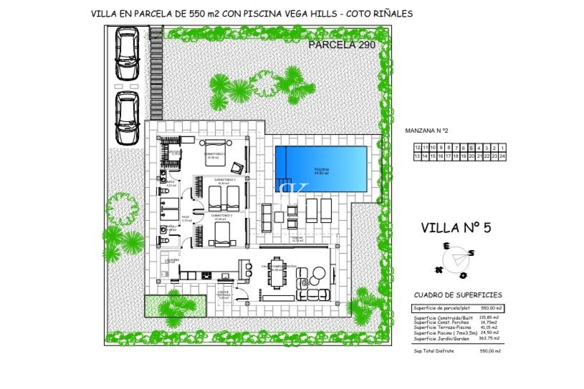 Un complexe de 215 villas indépendantes situé entre les impressionnantes montagnes de Los Almadenes et les magnifiques forêts riveraines qui bordent la Vega del Rio Segura.