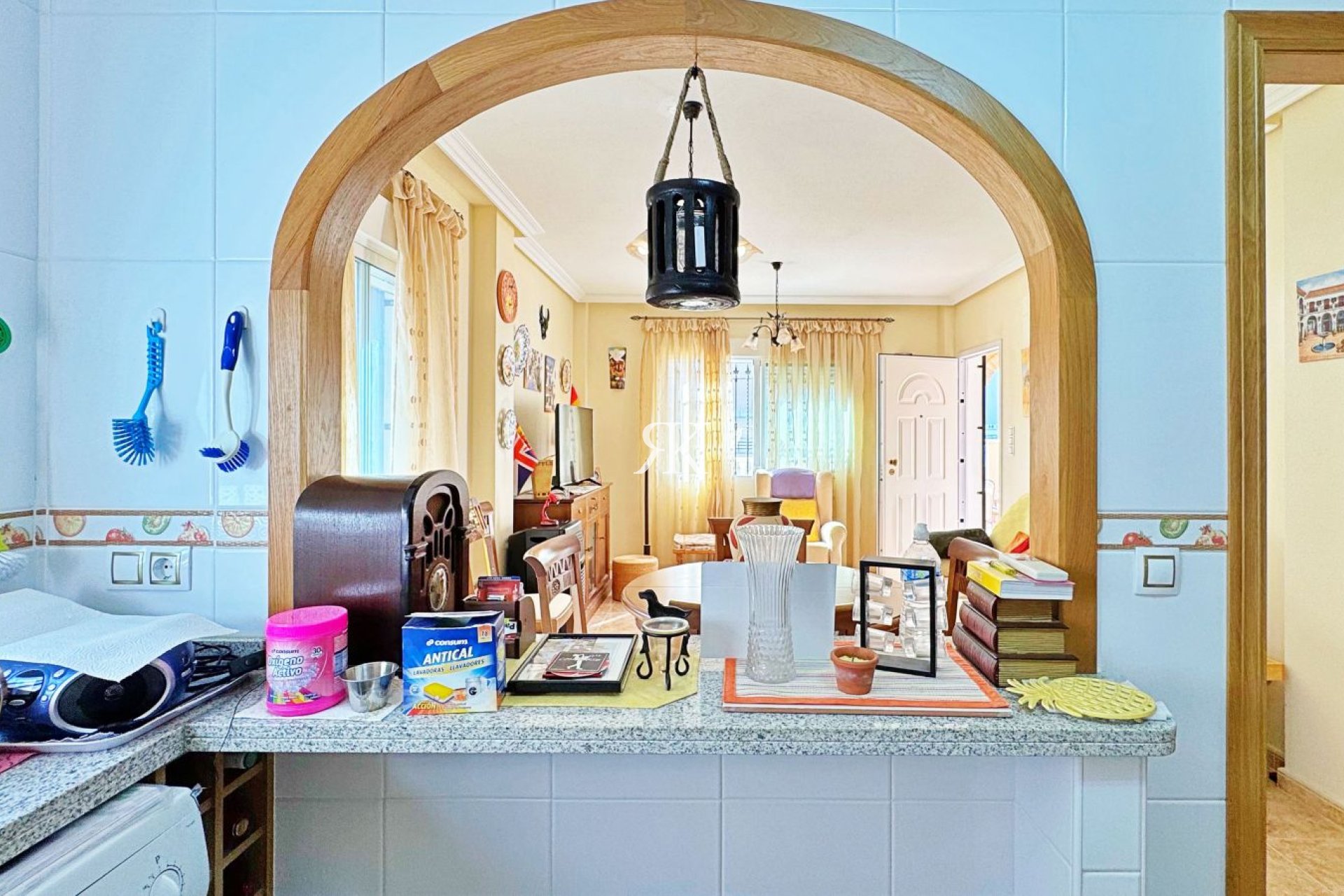 Superbe duplex d’angle de style méditerranéen situé dans la résidence exclusive Vista Azul, l’une des plus prisées de Villamartin, Orihuela Costa. Ce bien allie confort, élégance et emplacement idéal dans un environnement calme et familial, à proximité de tous les services essentiels.Avec 90 m² construits sur un terrain de 120 m², la propriété bénéficie d’une orientation sud-ouest assurant une luminosité naturelle tout au long de la journée. Le rez-de-chaussée comprend un salon-salle à manger lumineux avec accès direct à la terrasse, une cuisine indépendante entièrement équipée, une chambre parfaite pour les invités ou comme bureau, ainsi qu’une salle de bain complète. À l’étage, deux chambres avec placards intégrés, une deuxième salle de bain et un accès au solarium privé de 20 m², idéal pour se détendre ou profiter du soleil et de la vue dégagée.La maison est en excellent état et équipée de la climatisation, de stores, d’une porte de sécurité et d’un parking privé sur la parcelle. La terrasse spacieuse qui entoure la maison offre plusieurs espaces extérieurs pour manger et se relaxer, parfaits pour profiter du climat méditerranéen toute l’année.La résidence Vista Azul dispose de magnifiques installations communes : deux piscines (dont une couverte), jacuzzi, sauna et salle de sport, faisant de ce complexe l’un des plus complets et recherchés de Villamartin.Située à proximité du golf de Villamartin, des centres commerciaux La Zenia Boulevard et Playa Flamenca, et à seulement 3 km des plages d’Orihuela Costa, cette propriété est idéale pour ceux qui souhaitent acheter un duplex à Villamartin ou investir dans un bien immobilier à vendre sur la Costa Blanca.Une maison pleine de charme, prête à emménager, parfaite comme résidence principale, maison de vacances ou investissement immobilier à Orihuela Costa.