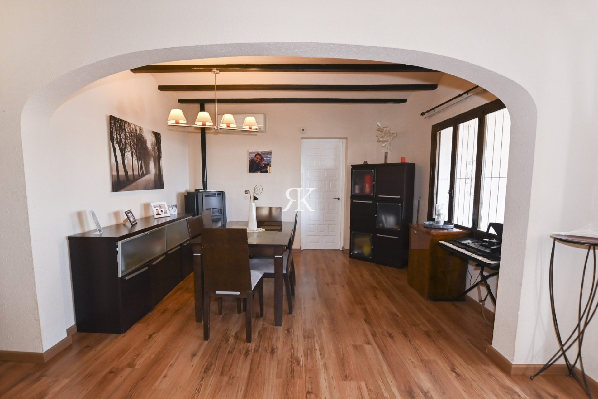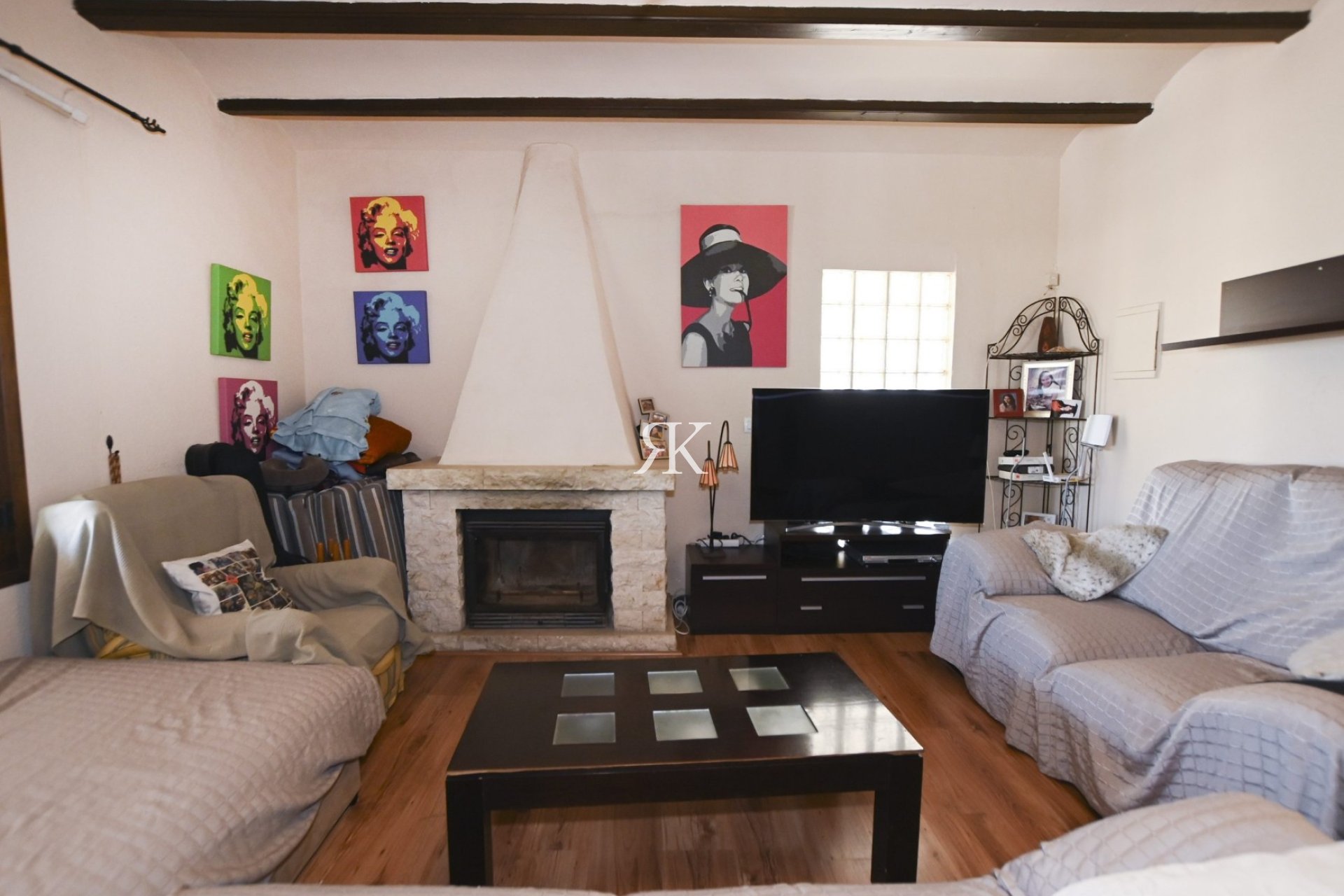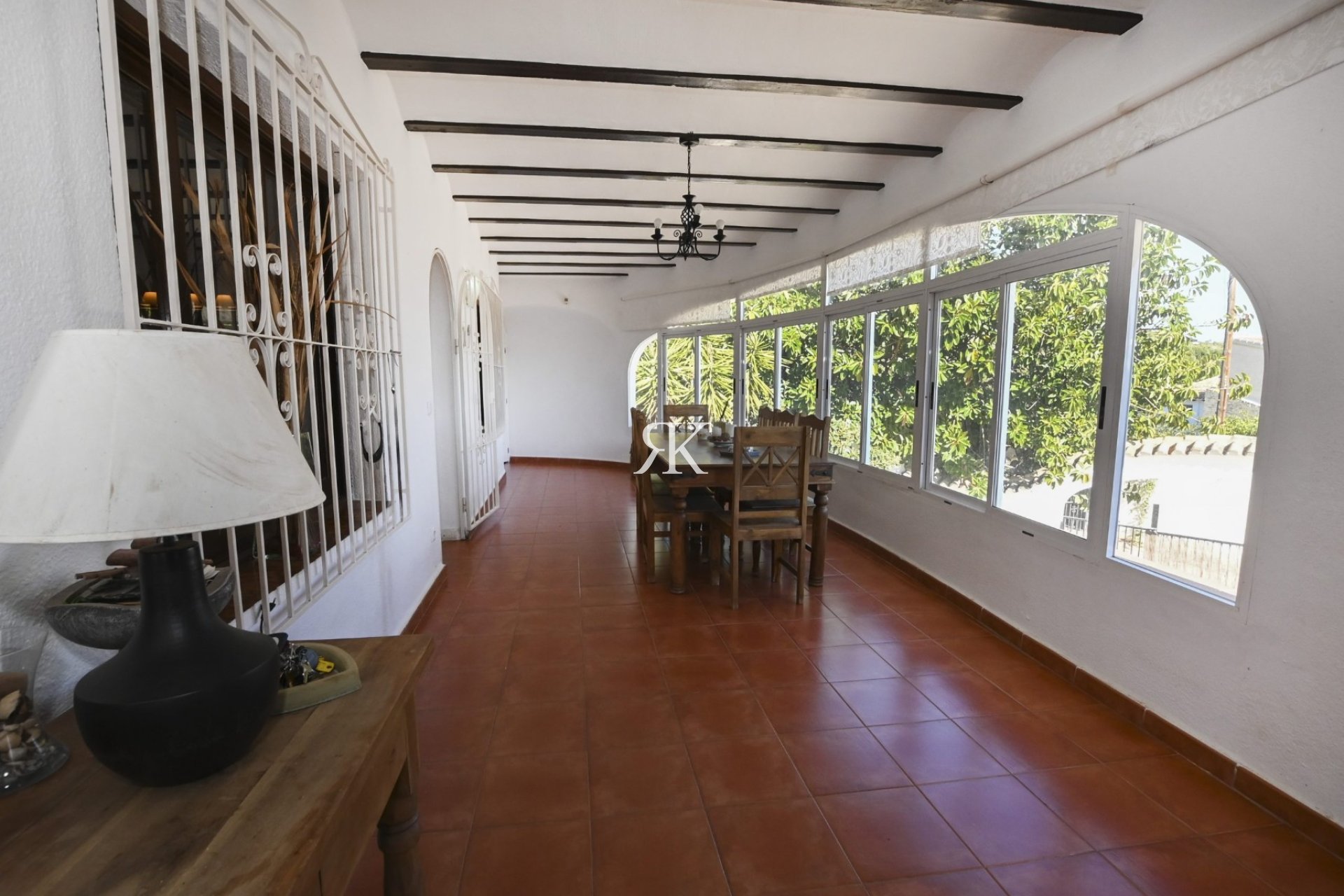 Een enorm glazen terras dat de helft van de voorkant van de villa beslaat en leidt naar een ruim open terras aan de zijkant. Open woon- en eetkamer met pelletkachel en airconditioning.