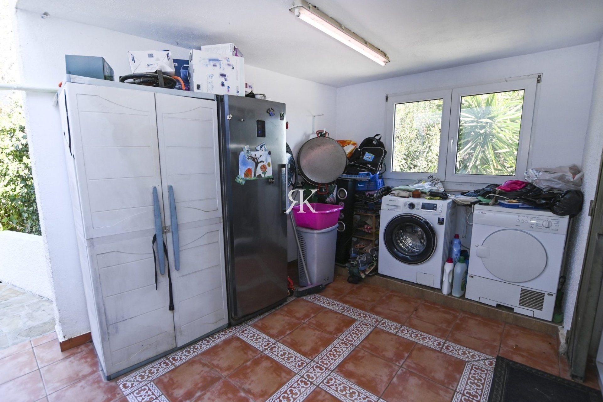 Ruime, onafhankelijke en volledig uitgeruste keuken met raam en een grote aparte was- en bergruimte.