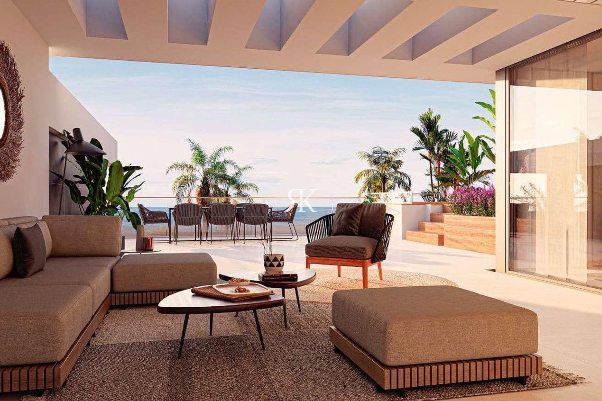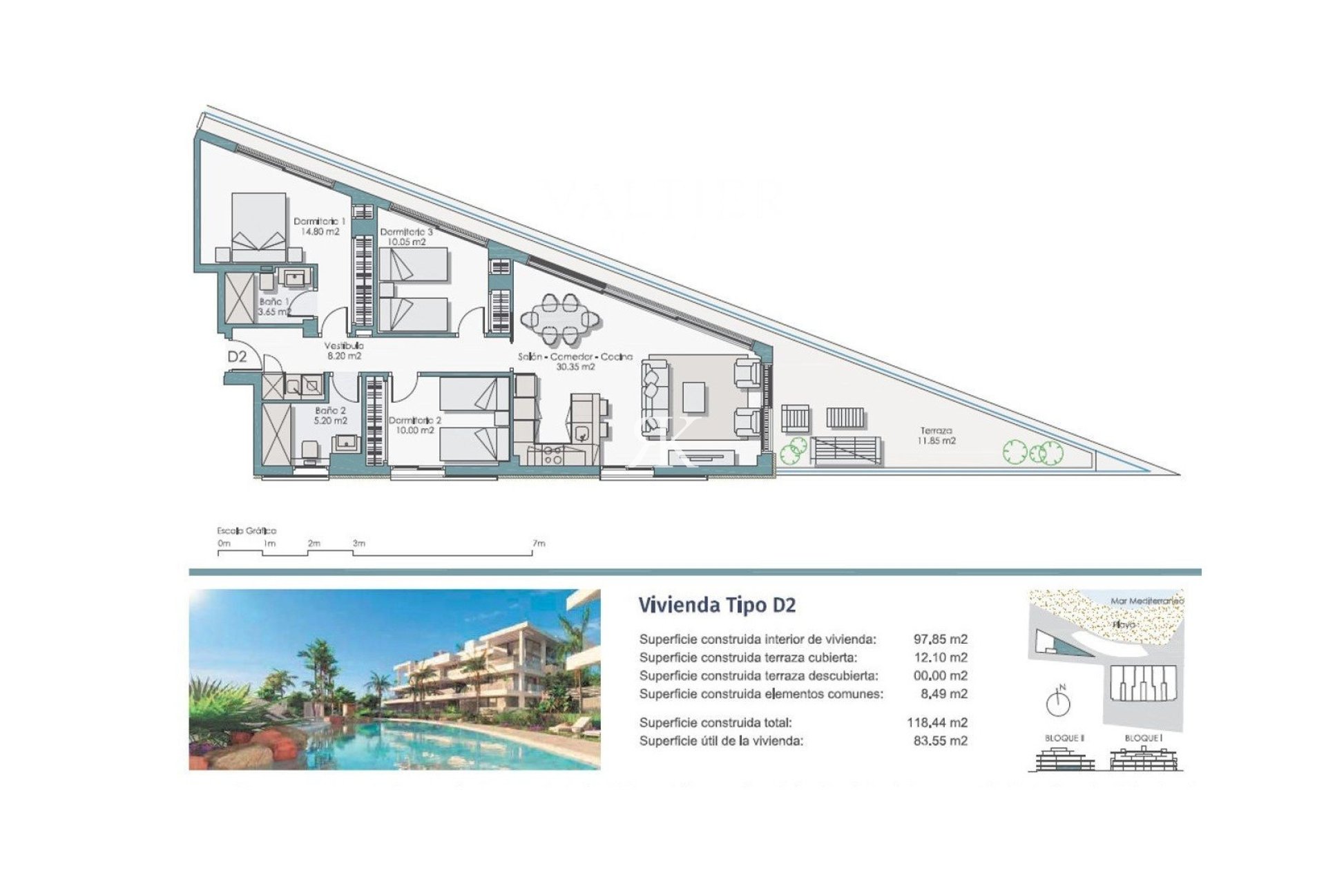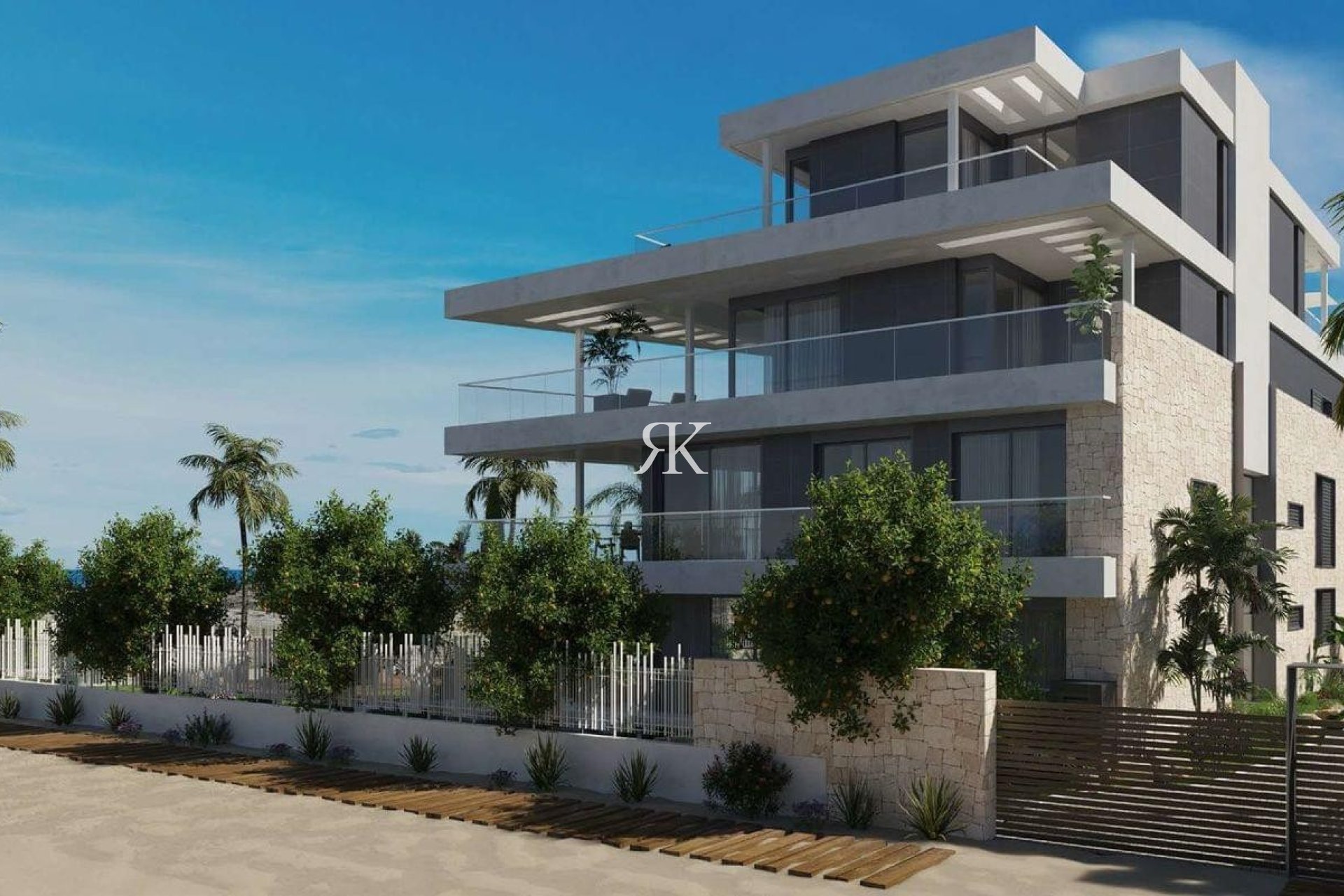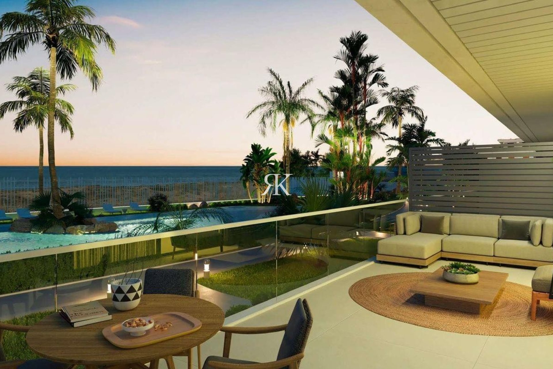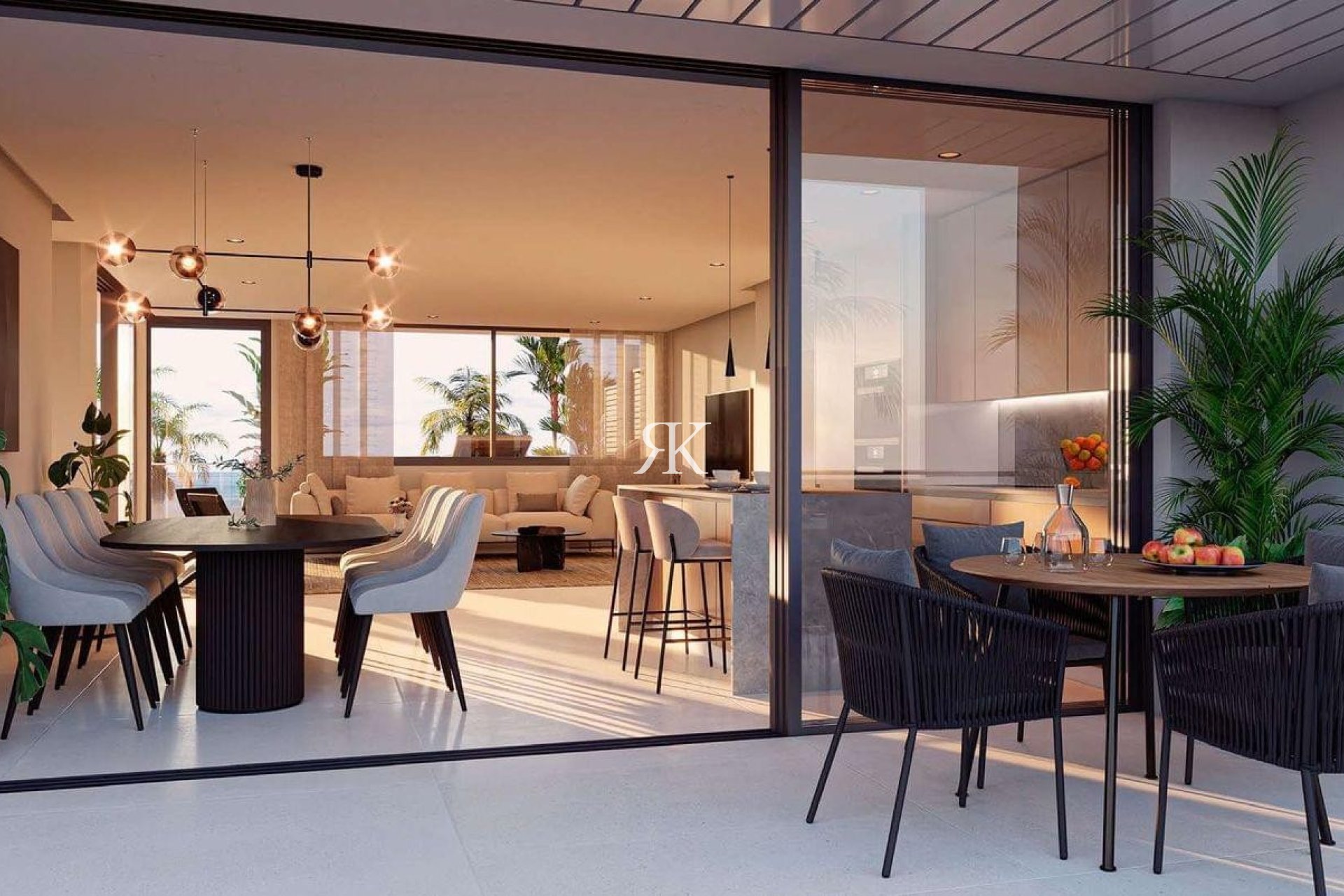 De beveiligde community beschikt over: 2 directe voetgangersuitgangen naar het strand en een ingang voor voertuigen via een gemotoriseerde schuifdeur naast de conciërge. Zwembaden met wit zand die de indruk wekken van een tropisch strand, omgeven door een mediterrane tuin met een groot aantal palmbomen. Alles verlicht door led-spots. Het gebouw wordt uitgerust met een pre-installatie voor het opladen van elektrische voertuigen.