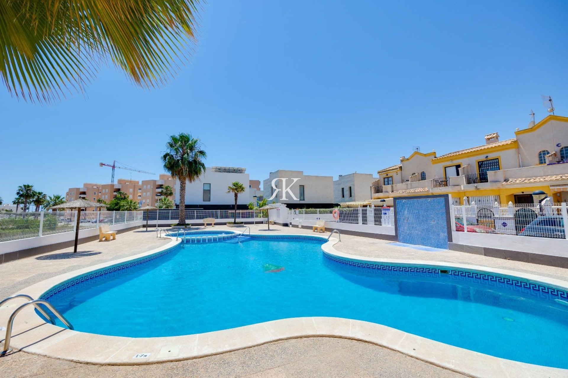 Deze rustige en goed onderhouden woonwijk beschikt over een gemeenschappelijk zwembad, ruime groene zones en parkeergelegenheid.