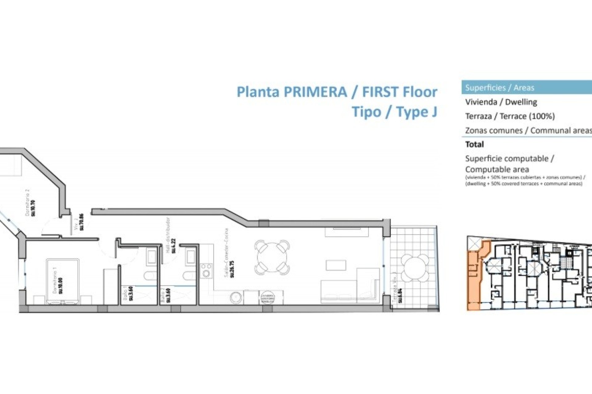El edificio constará de 44 apartamentos con ascensor y piscina comunitaria en el solárium comunitario, a solo 500 m del supermercado más cercano.