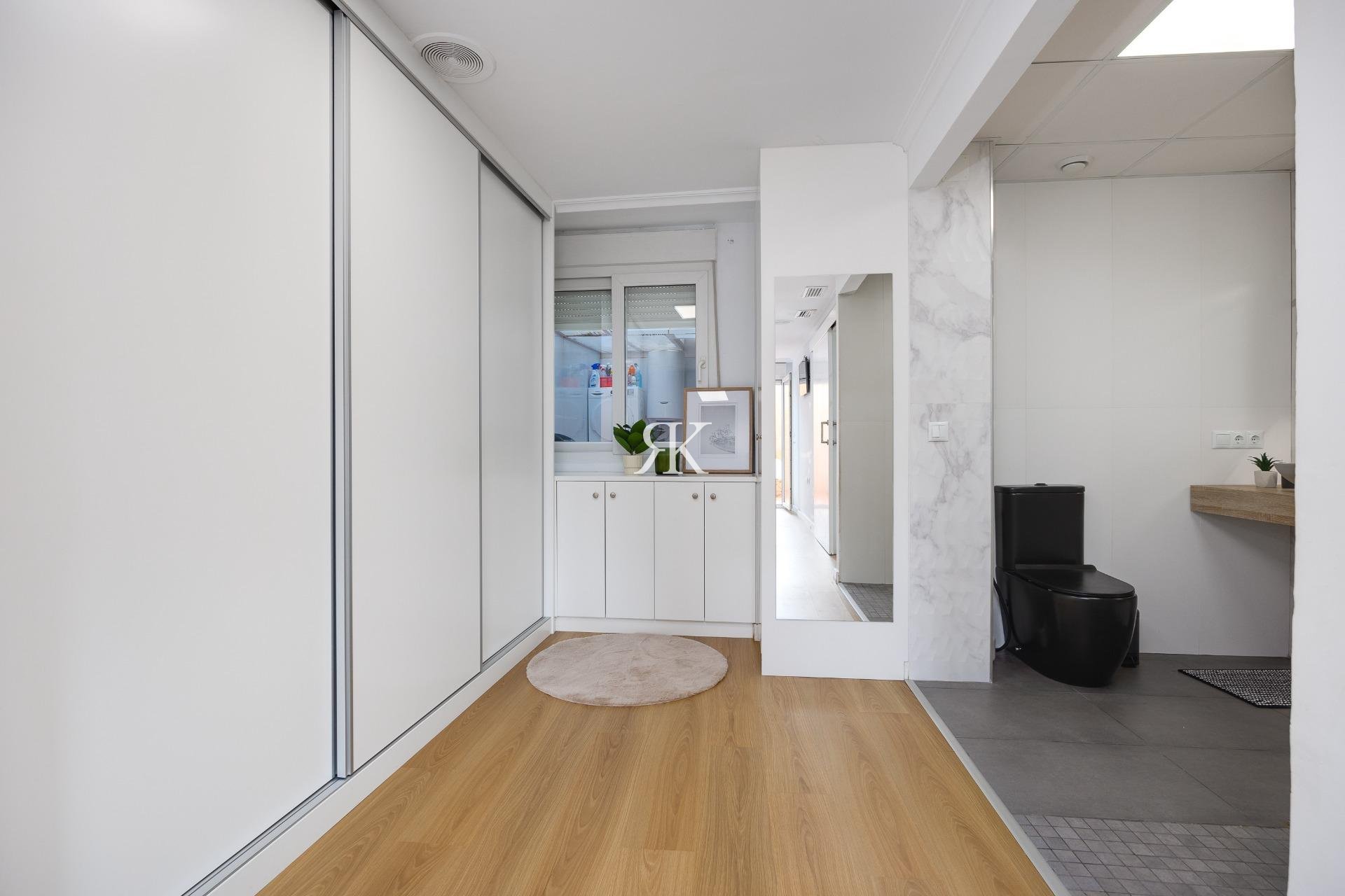 Descubre este magnífico y amplio apartamento, ubicado en pleno centro de Torrevieja, con todos los servicios a pie de calle y a tan solo 700 metros del mar y del emblemático paseo marítimo. Una ubicación privilegiada para disfrutar del estilo de vida mediterráneo sin renunciar a la comodidad. La vivienda, totalmente reformada con materiales de calidad, se sitúa en una primera planta con ascensor y ofrece una distribución moderna, funcional y elegante, pensada para el máximo confort. Al entrar, te recibe un espacioso y luminoso salón-comedor, con salida a una encantadora terraza, perfecta para disfrutar de un ambiente fresco y agradable. La cocina americana con barra, totalmente equipada, conecta con un patio interior con zona de lavandería, aportando practicidad al día a día. Dispone de 3 amplios dormitorios dobles y 2 baños completos. El dormitorio principal en suite destaca por su vestidor, baño privado y acceso a una terraza trasera con orientación sur, que inunda de luz natural la vivienda. En esta terraza podrás relajarte y disfrutar del clima mediterráneo, además de contar con una zona de trastero que aporta un valioso espacio extra de almacenaje. 🔑 Un valor añadido difícil de encontrar: el precio incluye dos plazas de garaje en el mismo edificio, un auténtico lujo en una ubicación tan céntrica. Una vivienda exclusiva, lista para entrar a vivir. No dejes pasar esta oportunidad!